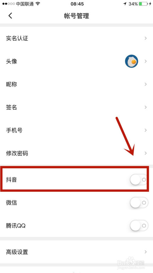 2.点击编纂资料,再点击打开抖音后的按钮。