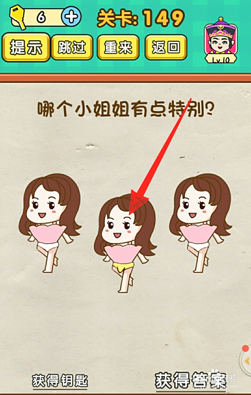 5.最后成果如下图,点击中心的蜜斯姐即可过关。