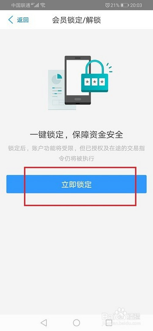 第五步进去之后,点击当即锁定,可以锁定网商银行账号,如下图所示: