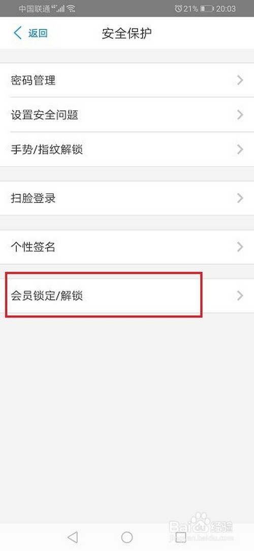 第四步在平安庇护界面,选择会员锁定/解锁,如下图所示: