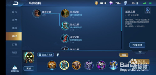 第二件装备,抵当之靴,增添移速、法抗、韧性。削减被控时候