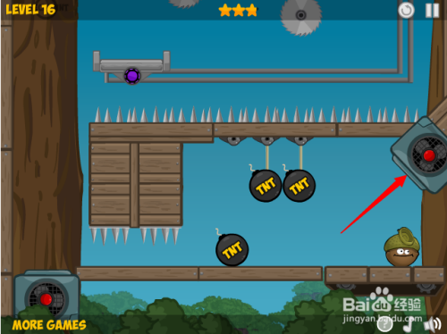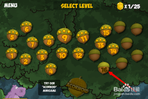 第二步:按照红色箭头点击第十六关进入游戏。