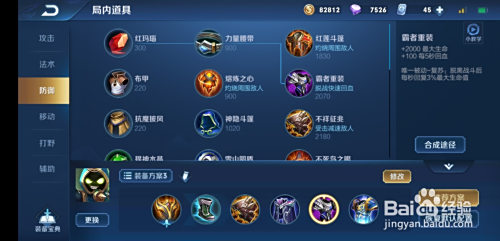 第五件装备,霸者重甲,增添血量、脱战回血。