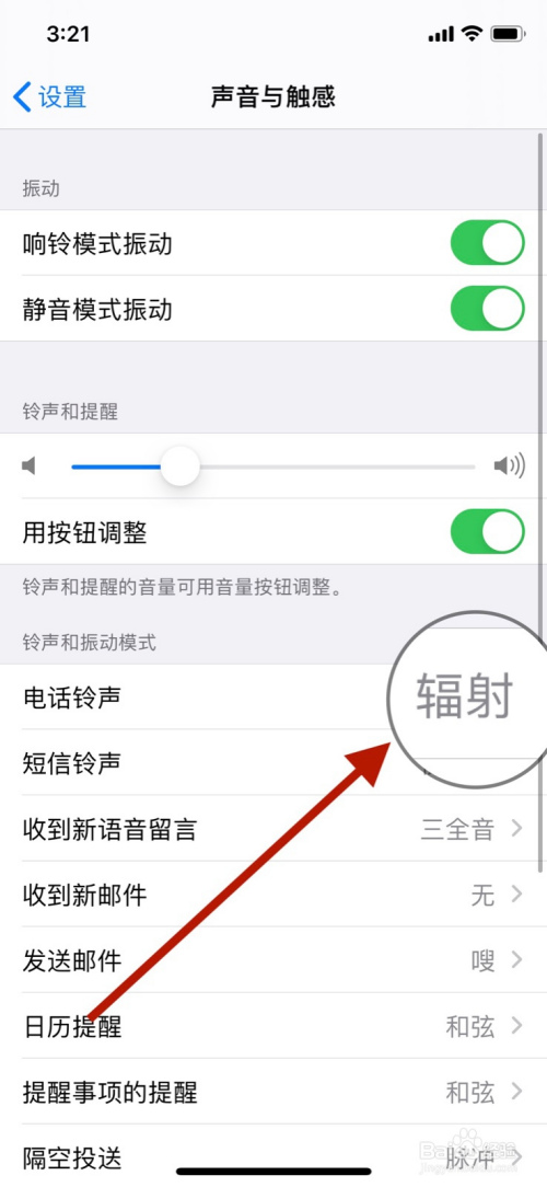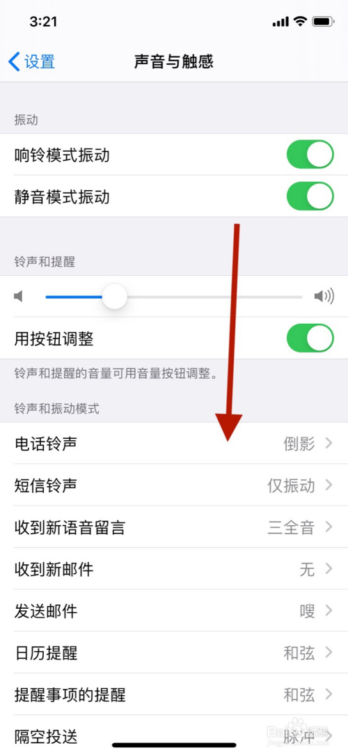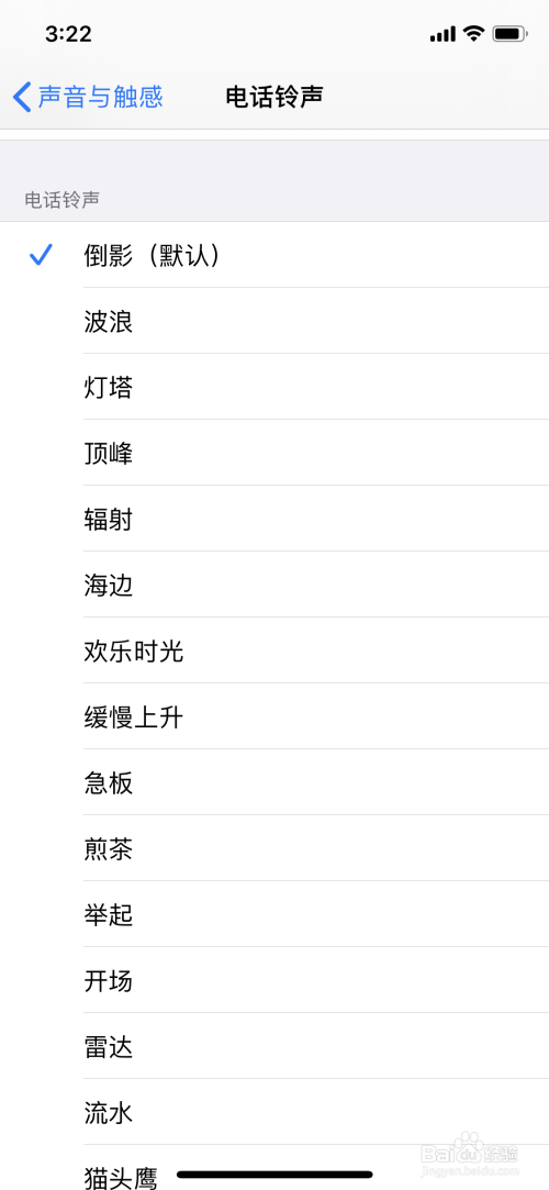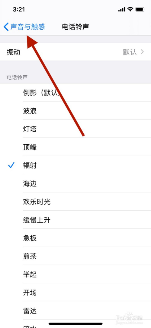 6、听取到认为合适的铃声点击左上角声音与触感。