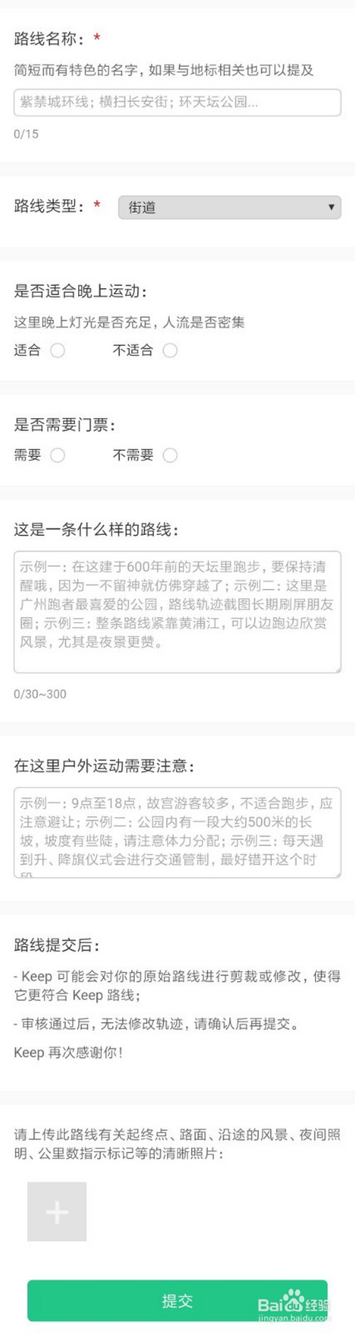 提交后的路线需要官方审核,审核经由过程后您就有属于本身建立的Keep路线了