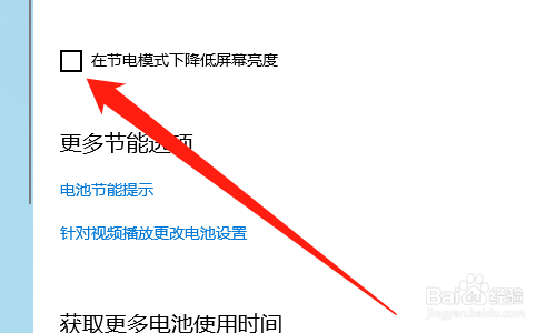 然后打消勾选【在节电模式下降低屏幕亮度】,如下图所示。