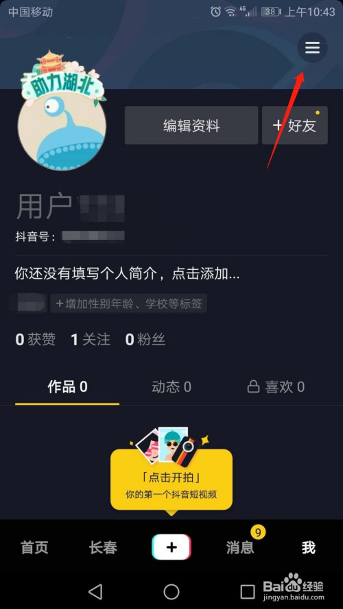 进入抖音短视频“我”界面,点击右上角三横图标。