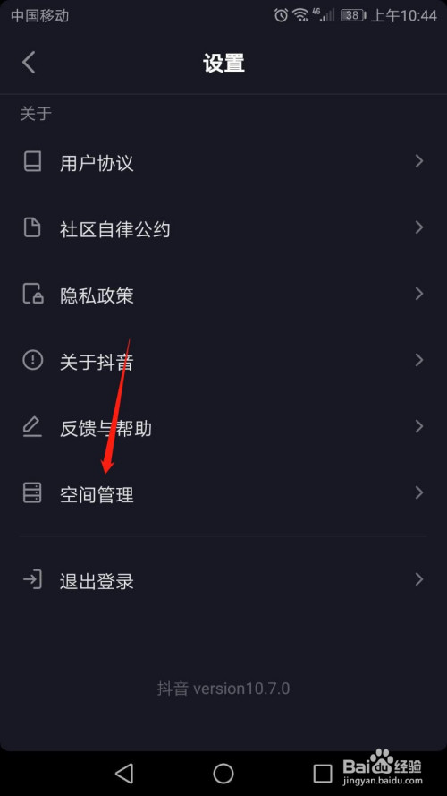 进入“设置”界面,标的目的上滑动页面,然后点击“空间办理”。