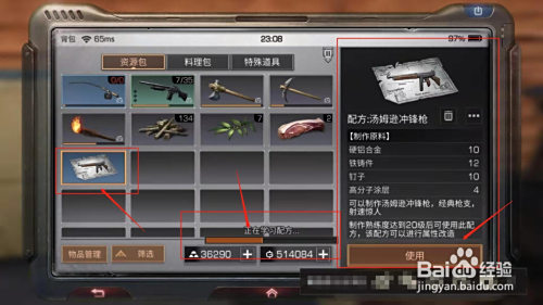 在本身的背包中,点击进修汤姆逊冲锋枪配方