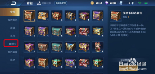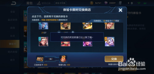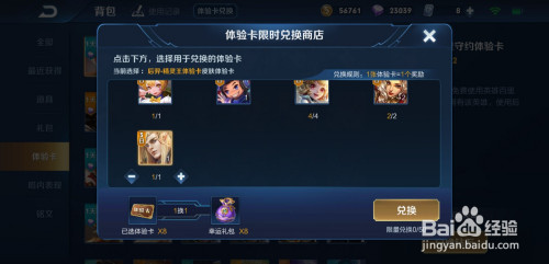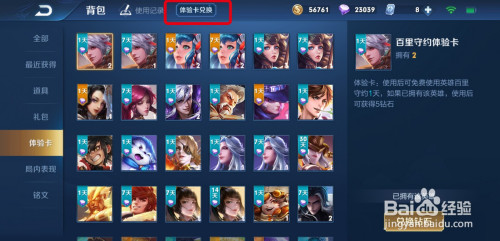 在【背包】中,查看本身的【体验卡】。然后点击上方的【体验卡兑换】。