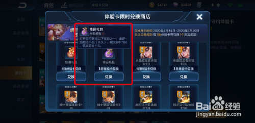 3.进入体验卡兑换勾当;