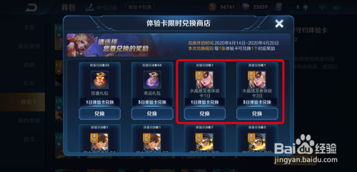 在【体验卡兑换】界面,我们看到可以兑换【水晶猎龙者体验卡1日】和【水晶猎龙者体验卡3日】.
