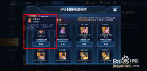 进入【惊喜礼包】,用1日体验卡进行兑换。一次勾当最多能兑换50个礼包。开启后,有概率获得永远皮肤。