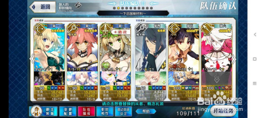 声势:水贞德带宝石翁,花嫁尼禄,豆爸,狐狸必备;后排带两个蹭羁绊从者,换人号衣。