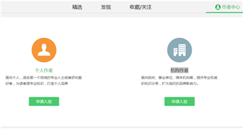 进入作者中间,可以看到机构作者,点击申请入驻。