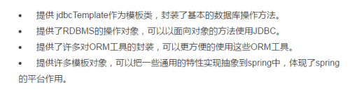 Spring JDBC/ORM : spring对JDBC做了一层封装 ,使经由过程JDBC完当作对数据库的操作加倍简练