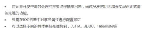 Spring事务处置: 经由过程Spring AOP实现自身功能加强的典型模块。