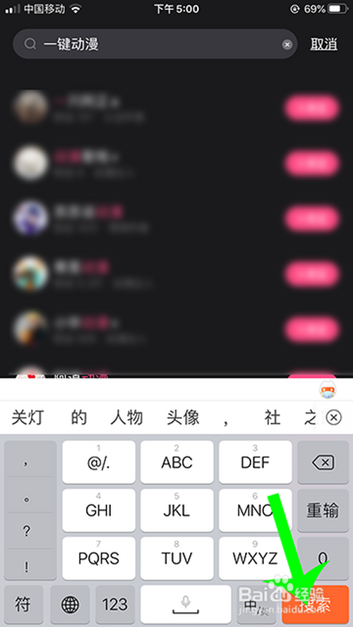 在搜刮框输入“一键动漫”,点击“搜刮”。