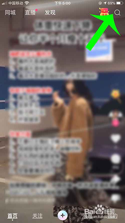 打开手机桌面的“全平易近小视频”,进入全平易近小视频后,点击右上方的搜刮图标。