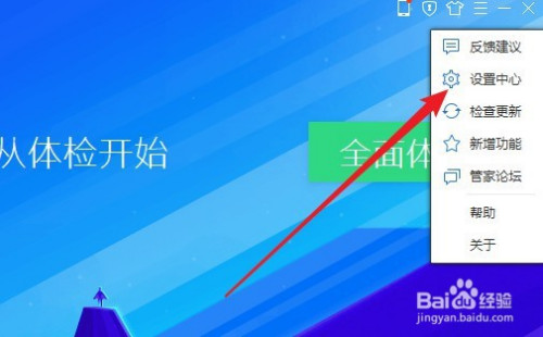 点击电脑管家右上角的设置按钮,在弹出的菜单中选择设置中间的菜单。