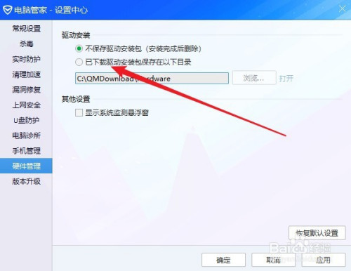 接着在右侧窗口找到,并选择以下载驱动程序包保留在以下目次的选项。