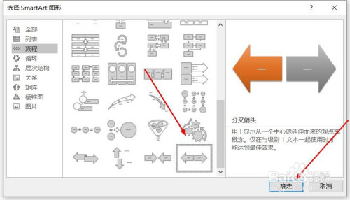4、点击“分叉箭头流程”,然后点击“确定”。