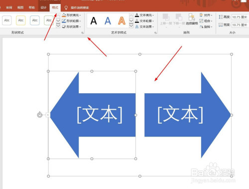 点击鼠标左键不放画线,插入分叉箭头流程当作功,选中插入对象,点击“格局”,并点击“形式样式”。