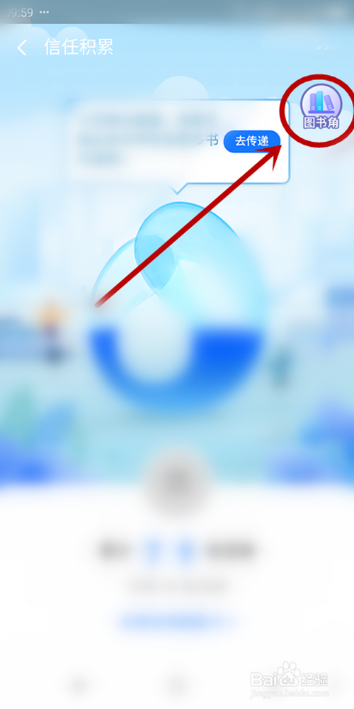 6、弹出【信赖堆集】页面,单击右下角的【图书角】