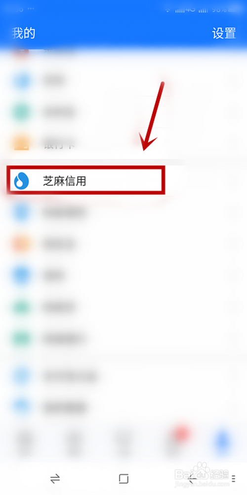 3、进入【我的】页面,上滑屏幕找到【芝麻信用】选项单击