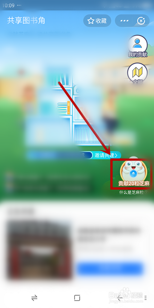在【共享图书角】页面,单击【进献20芝麻粒】