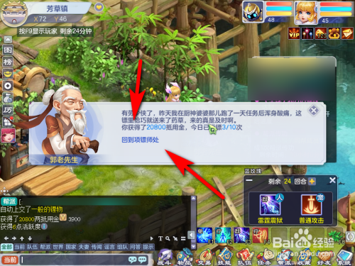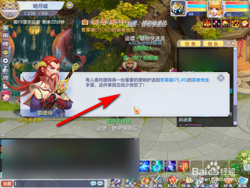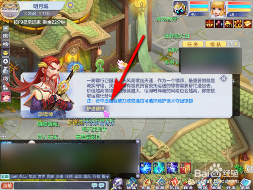 起首脚色来到明月镇,找到脚色项镖师NPC,点击NPC