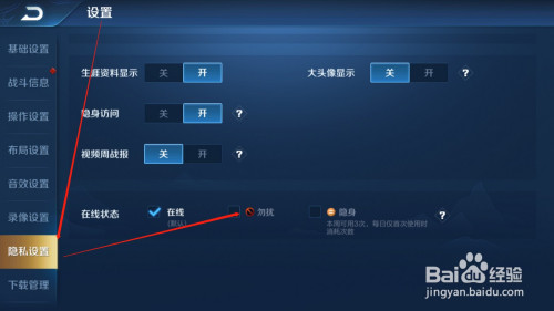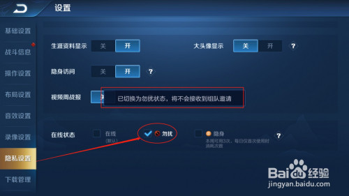 第四步:选择隐私设置里面的在线状况,点击勿扰,如图