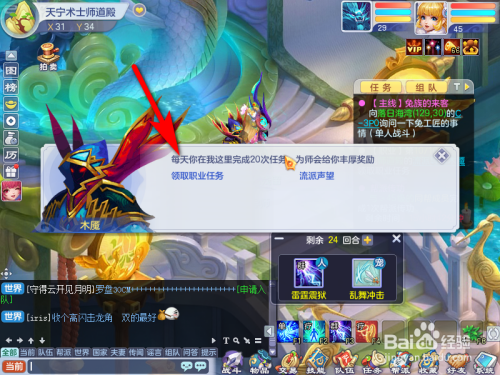 起首当游戏中人物品级达到30级之后,可以回到师道殿,找到职业导师