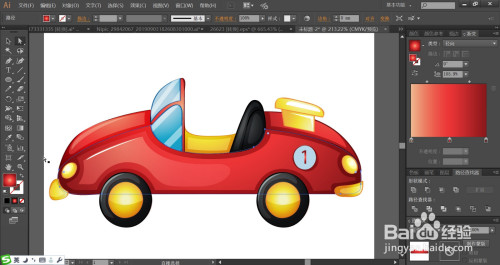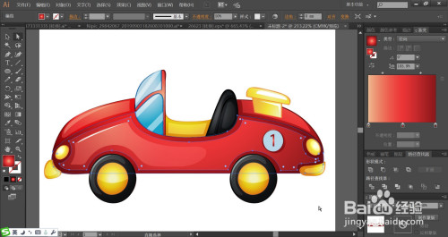 设置红色的渐变填充车身的正面与顶端,再用正片叠底的红色渐变填充车身边缘的暗光路径。