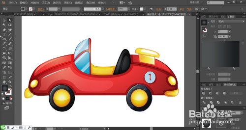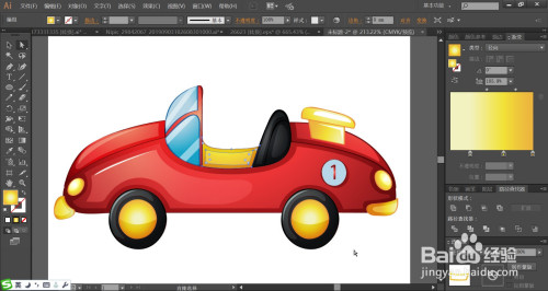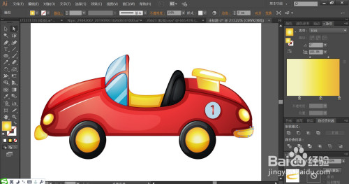 汽车的车座用黑色的渐变填充,用正片叠底的灰黑色渐变来增强车座上面的暗光结果,车座的底部用橙黄色的渐变填充,边缘的暗光同样用正片叠底模式的橙黄色渐变来增强一下,完当作玩具车图片设计。