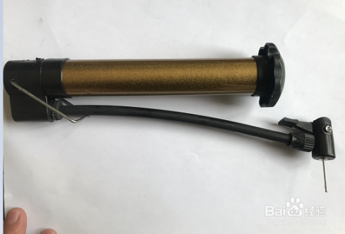 将气筒侧放在桌面,筹办好气针;