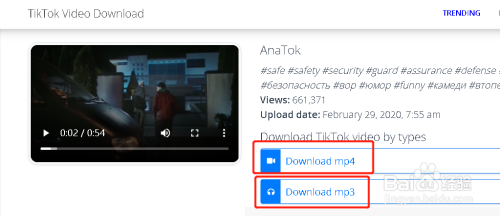 稍等半晌会呈现下面的图,我们可以选择下载MP4视频或者MP3音频,