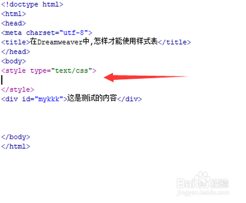 在test.html文件内,编写<style type="text/css"></style>标签,页面的css样式将写在该标签内。