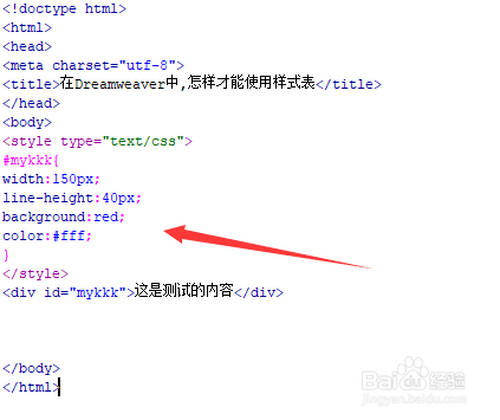 2、在test.html文件内,编写<style type="text/css"></style>标签,经由过程id设置div的样式。