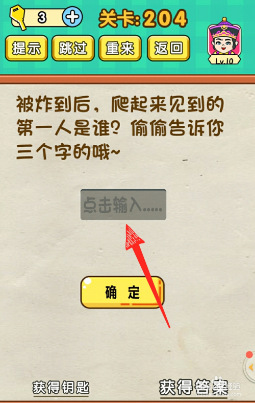 最后成果如下图,输入谜底:阎王爷,点击确定即可过关。