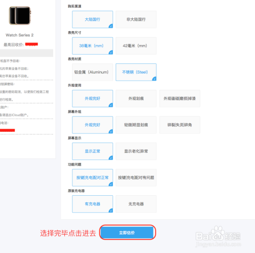 进入到评估页面会呈现良多选项,采办渠道,表壳尺寸和一些外不雅利用功能的选项,只需要按照本身的苹果手表如实选择完毕之后当即估价,就可以在线评估出收受接管价钱了