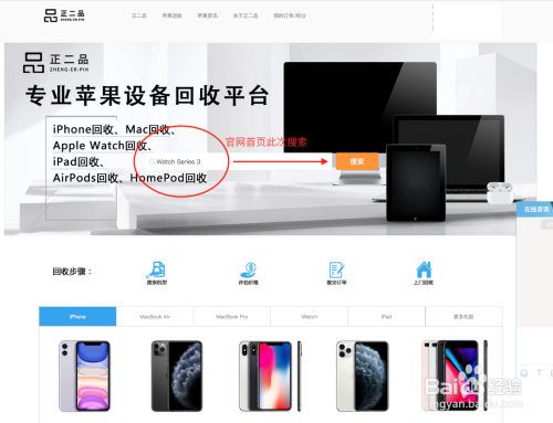 在正二品官网找到您要估价收受接管的类型iwatch选择Watch Series 3或者直接搜刮Watch Series 3点击进入到评估详情页面。