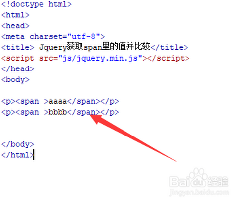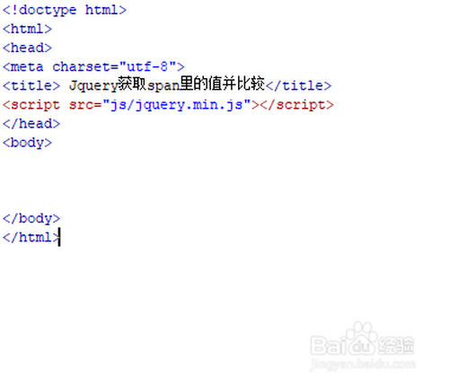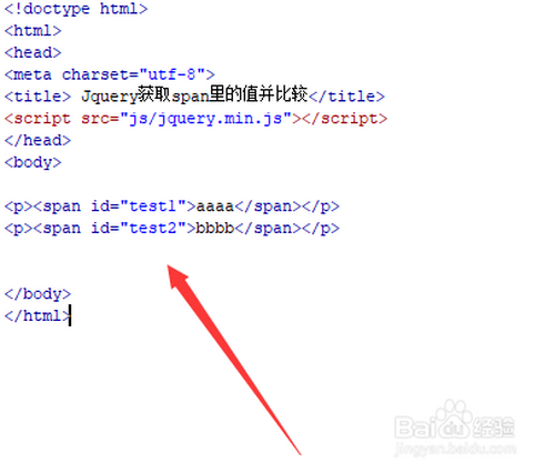 新建一个html文件,定名为test.html,用于讲解Jquery获取span里的值并比力。
