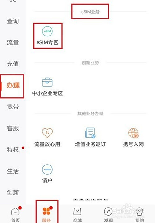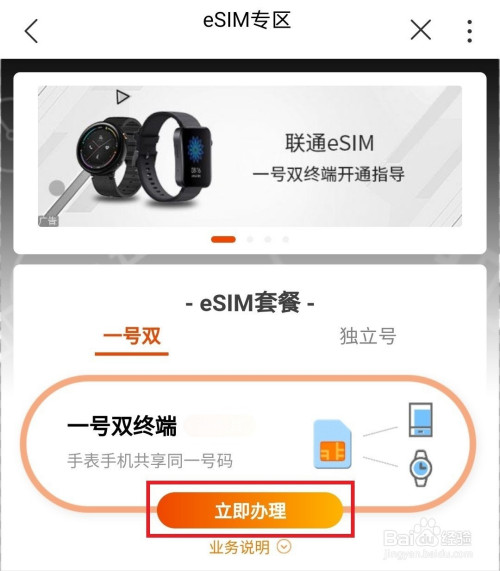 请下载安装中国联通手机营业厅APP,然后在首页搜刮“eSIM专区”或经由过程“办事>打点>eSIM营业>eSIM专区”进入;