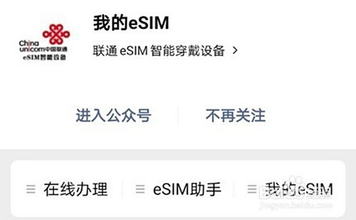 END存眷公家号联通eSIM智能穿戴设备后点击进入公家号;