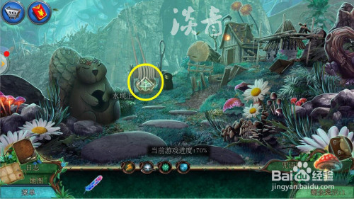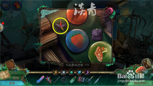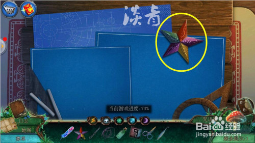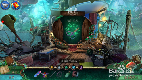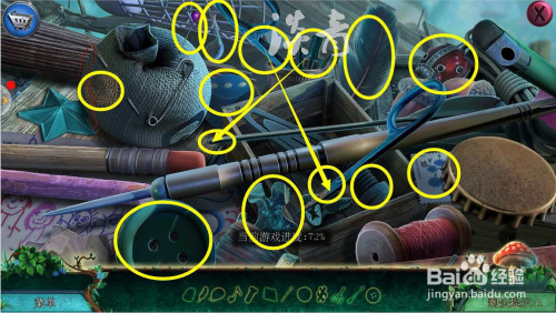 回到【水坝上】场景,点击右边的杂物,进入寻物小游戏:按照下列虚影找到相对应的物品;完当作寻物小游戏拿到【粘性铰剪】。