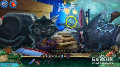 再用【催眠咒语】催眠大猫,接着拿到地面线轴上的【绳索】。
