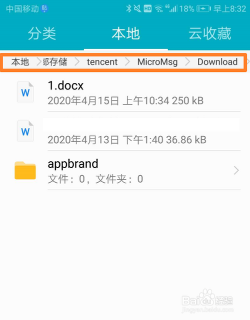 您所下载的文件,好比Word文档保留在tencent——MicroMsg——Download目次下.