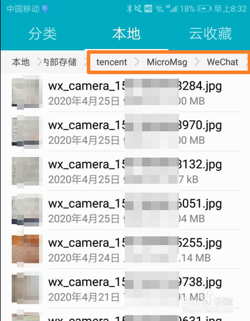 而保留的照片图片的话是在分歧的文件夹中,保留在tencent——MicroMsg——WeChat