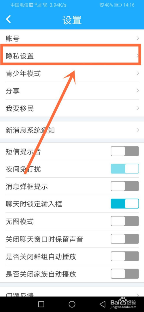 进入设置界面后,点击【隐私设置】进入。如下图所示